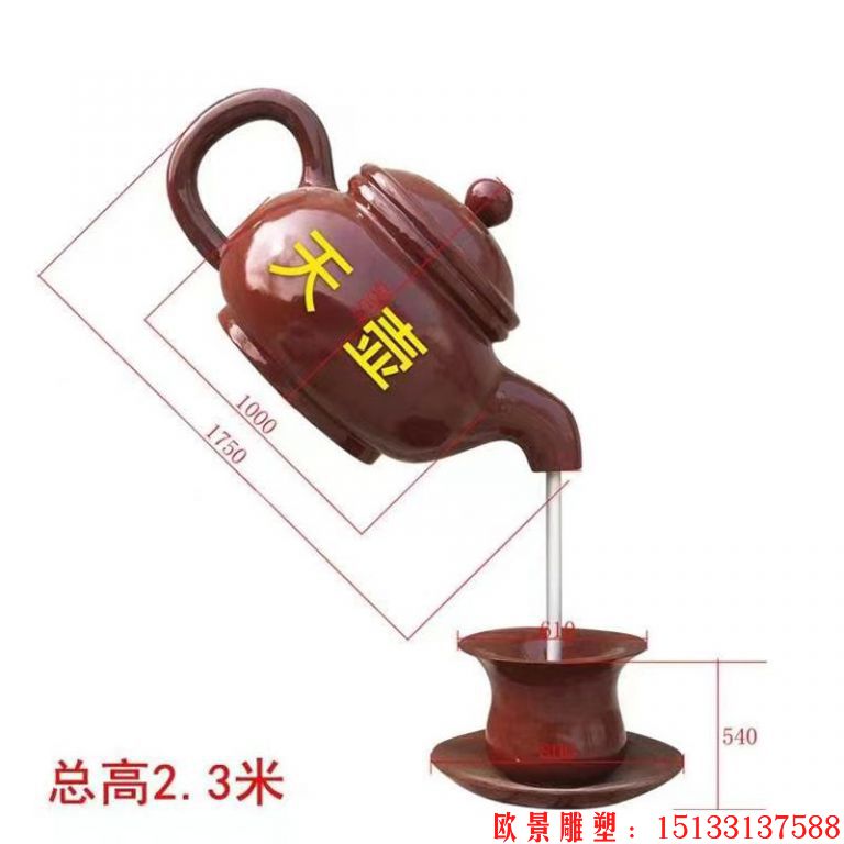 景区不锈钢天壶 立体景观茶壶流水摆件